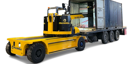 EN BOX puede levantar cargas de hasta 3 t, está equipado con cámaras que permiten una excelente visibilidad para que el operador vea el correcto bloqueo de la caja desde la pantalla ubicada en el asiento del conductor.